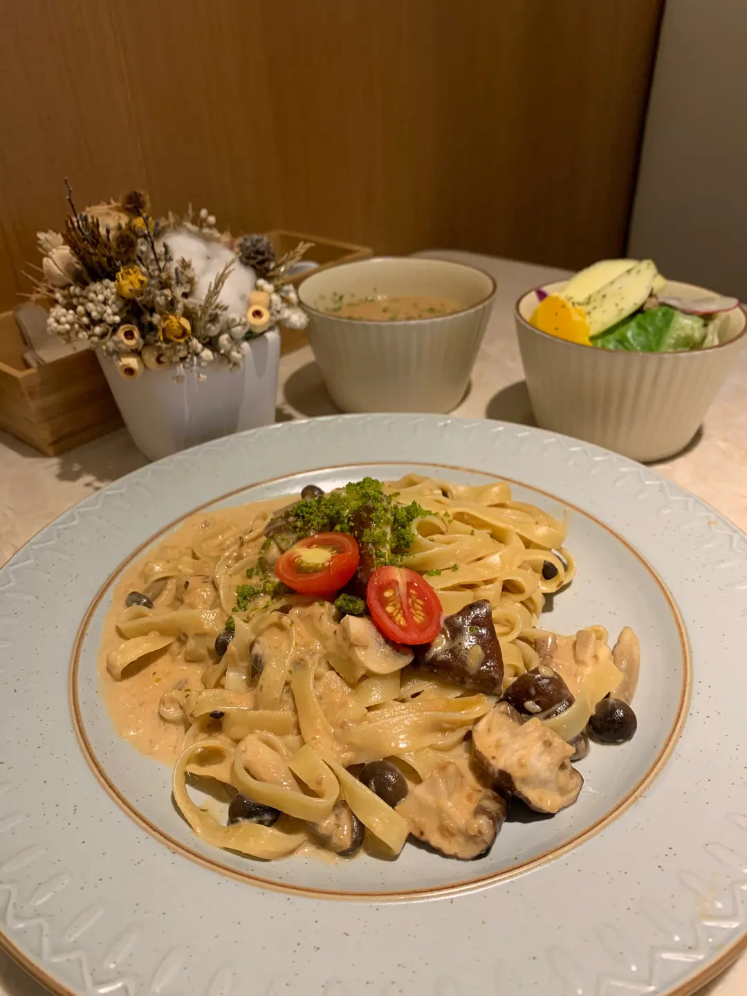 烤磨菇忌廉汁闊條麵