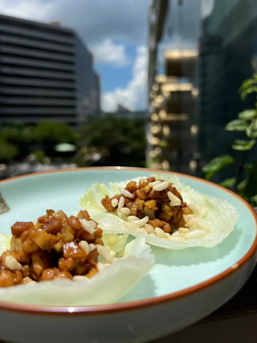 素肉末爆米花配生菜
