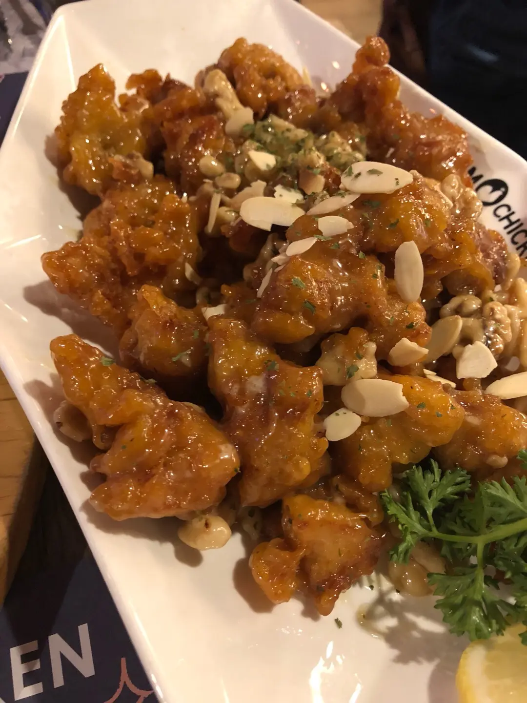 蜜糖果仁炸雞