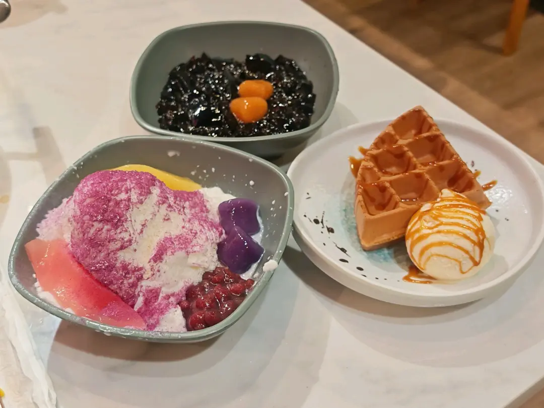 芋圓仙草凍、雪糕窩夫和綿綿冰
