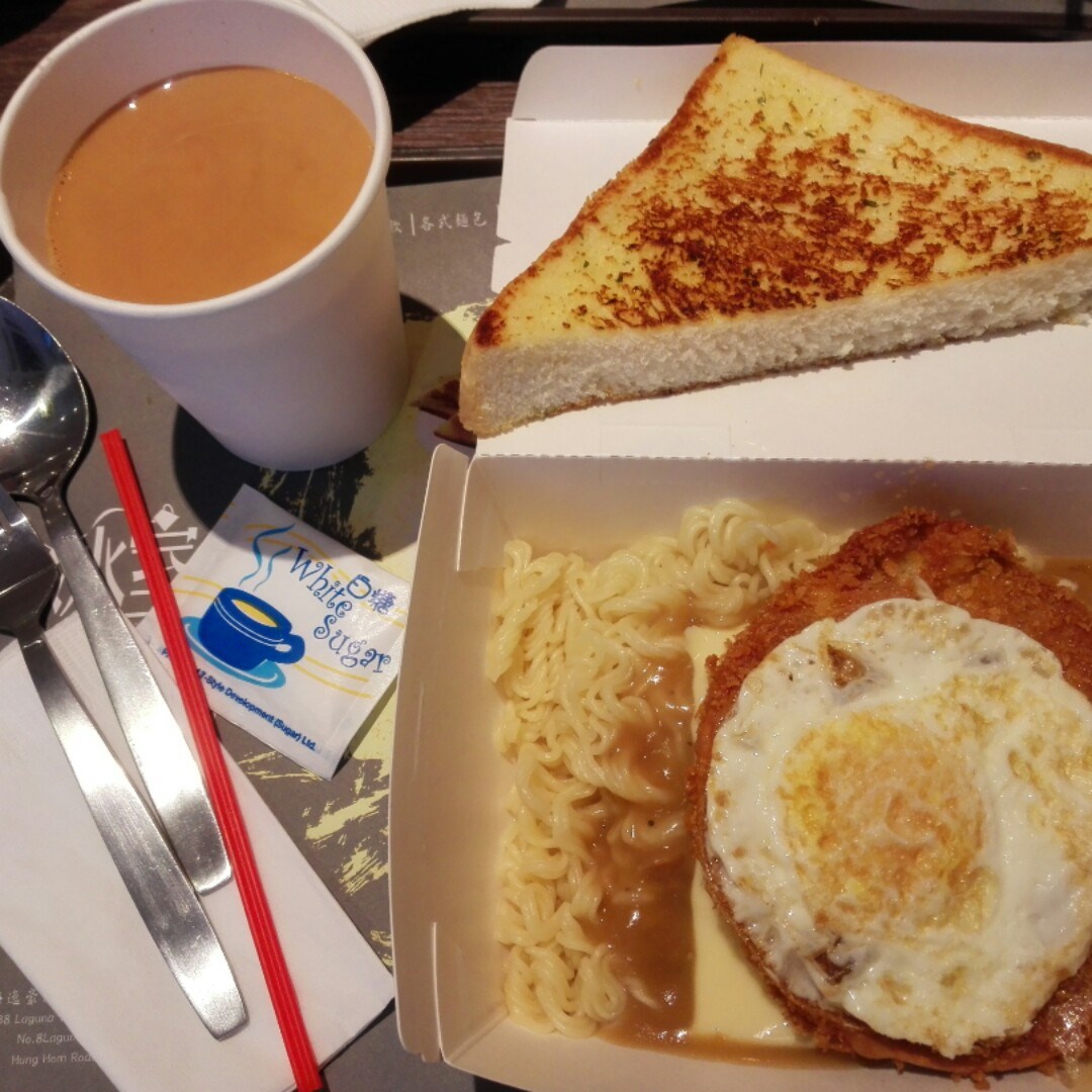 富士山肉汁撈芝士公仔麵配香烤蒜蓉包配熱奶茶