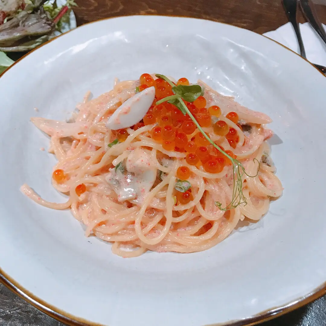 明太子忌廉意粉配三文魚子