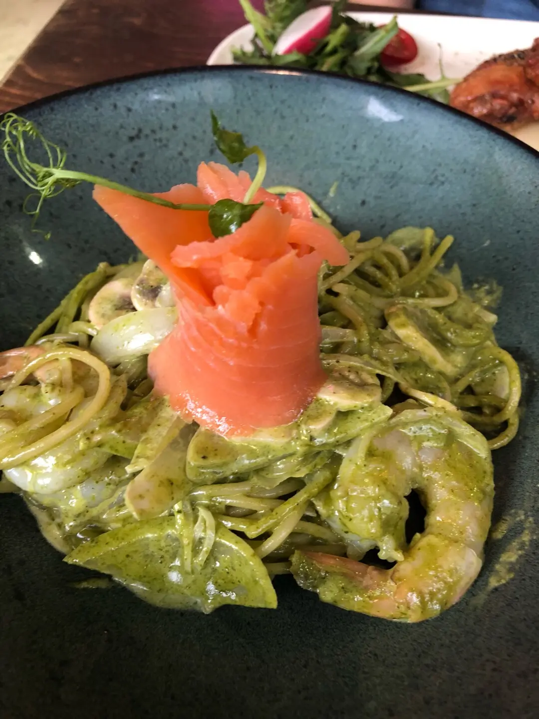 香草蘆筍鮮蝦煙三文魚意粉