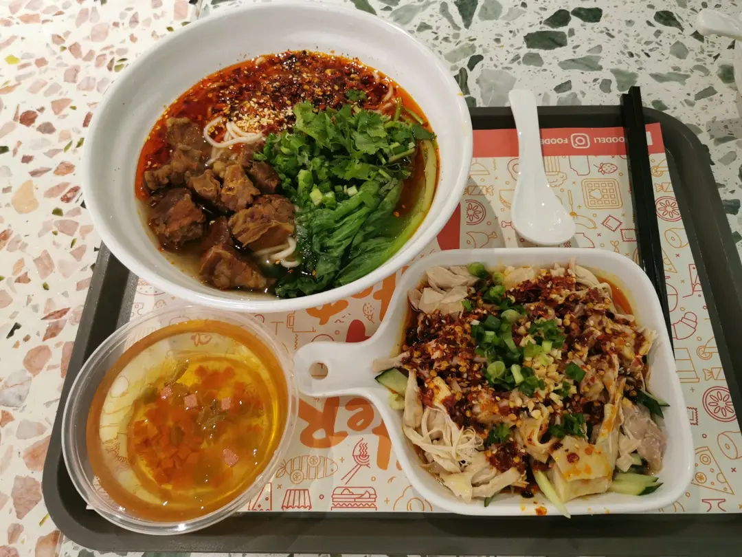 山城牛肉麵,麻辣手撕雞和紅糖冰粉