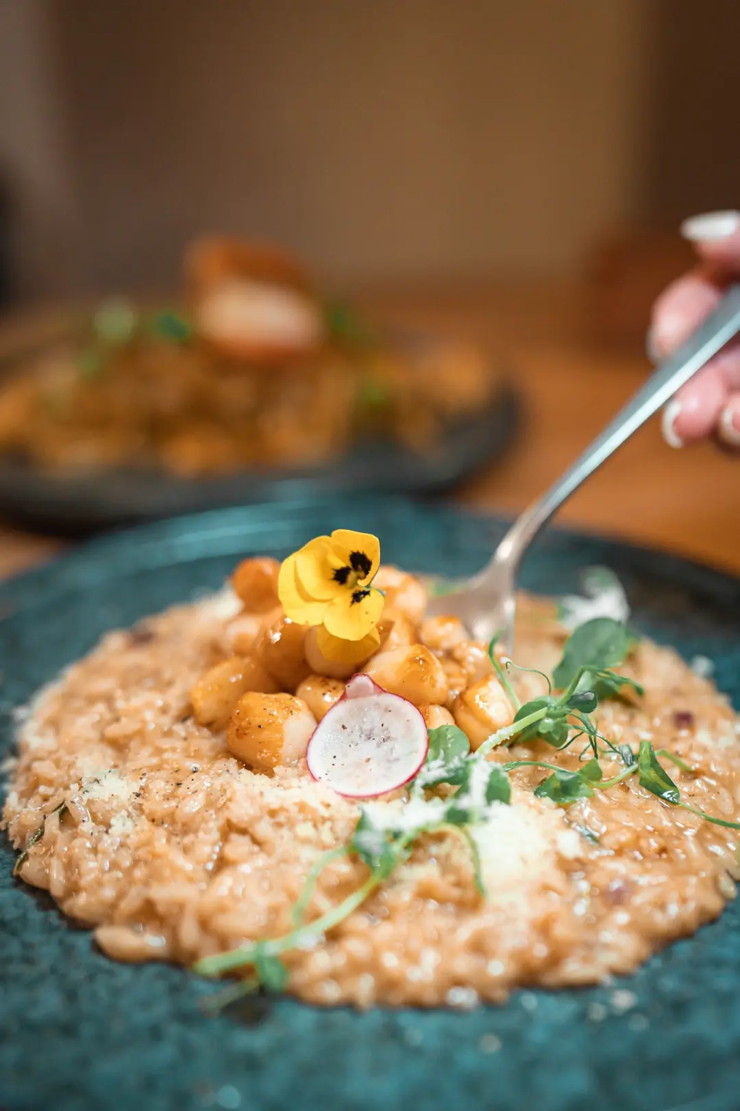 北海道魷魚肝汁意大利飯配香煎刺身級小貝柱