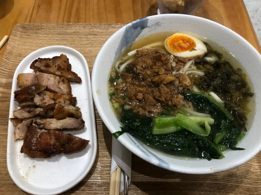 魯肉滷蛋湯麵配雞腿排