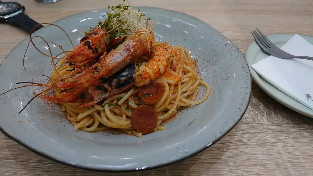 紅蝦辣肉腸意粉
