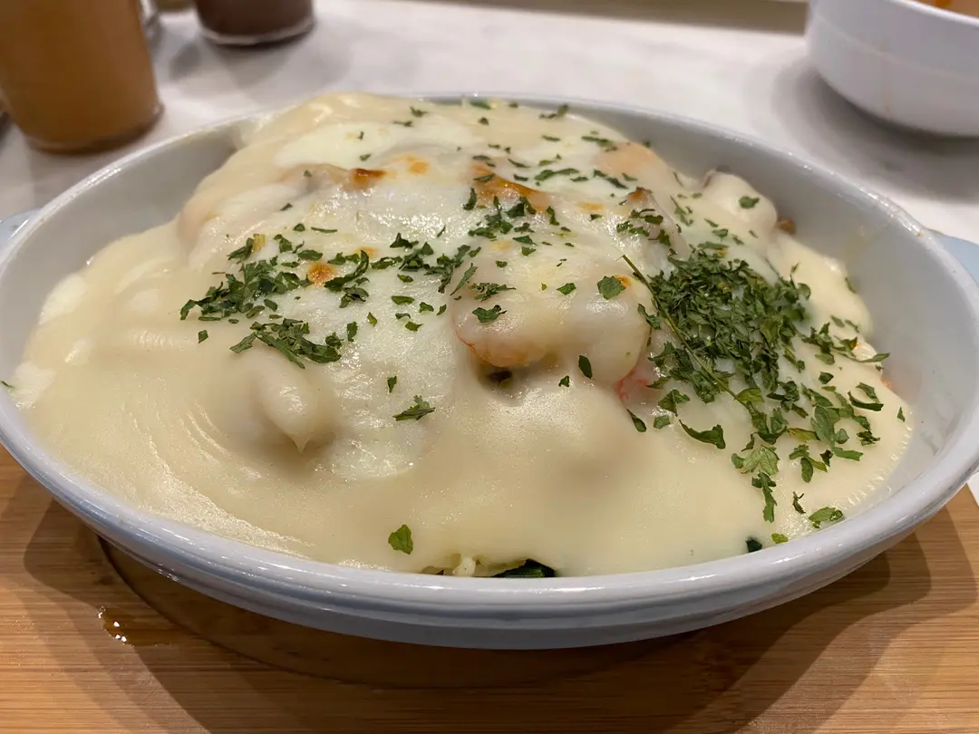忌廉菠菜焗海鮮飯