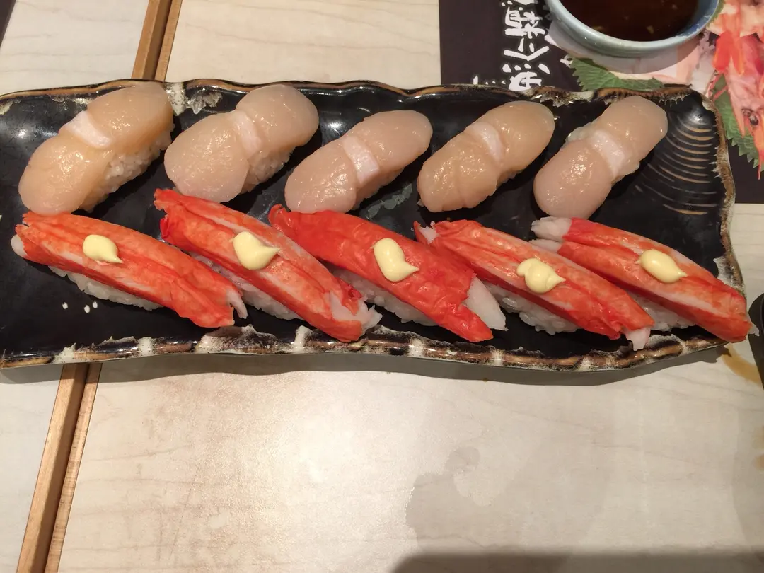 一口帆立貝壽司,蟹棒壽司