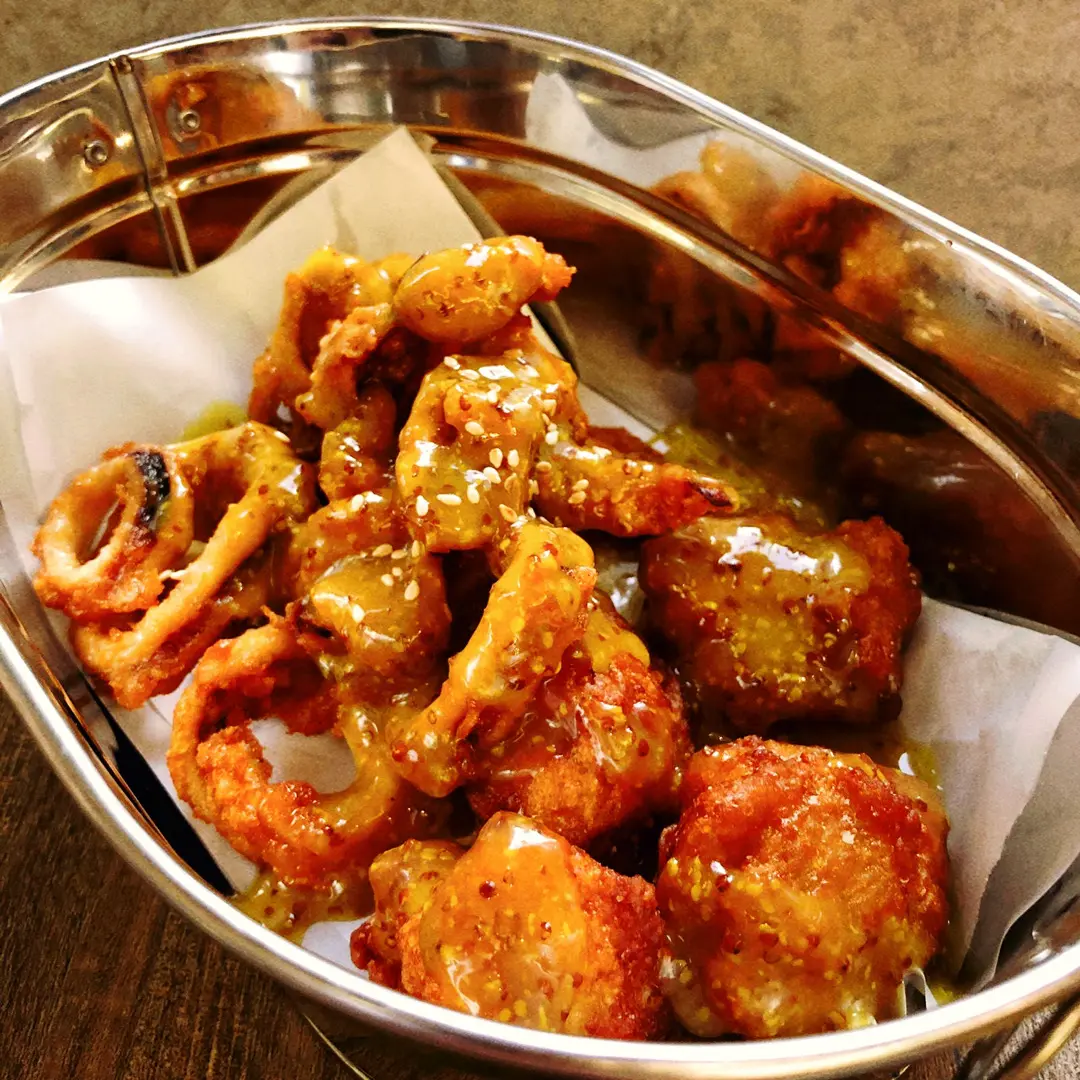 炸雞球配魷魚圈