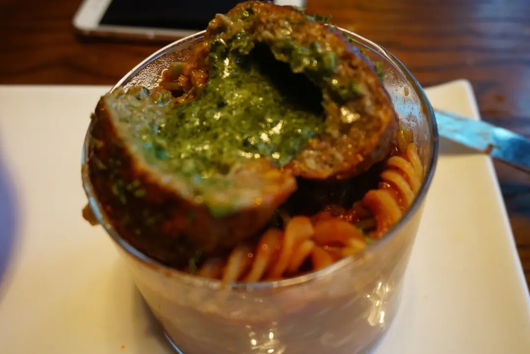紅酒漢堡牛肉螺絲粉 配藍芝士沙律