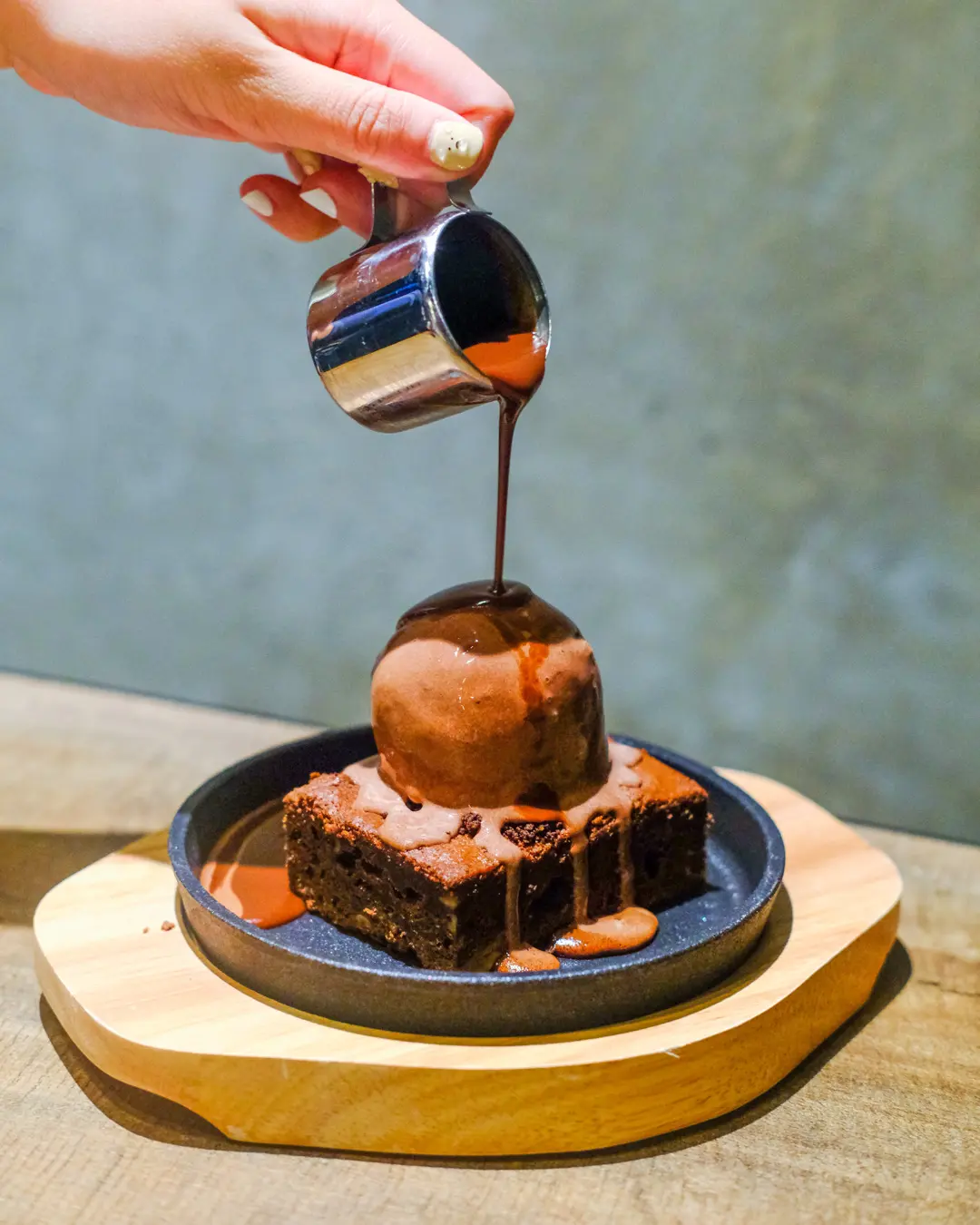 熱鍋上的布朗尼配凍冰冰雪糕