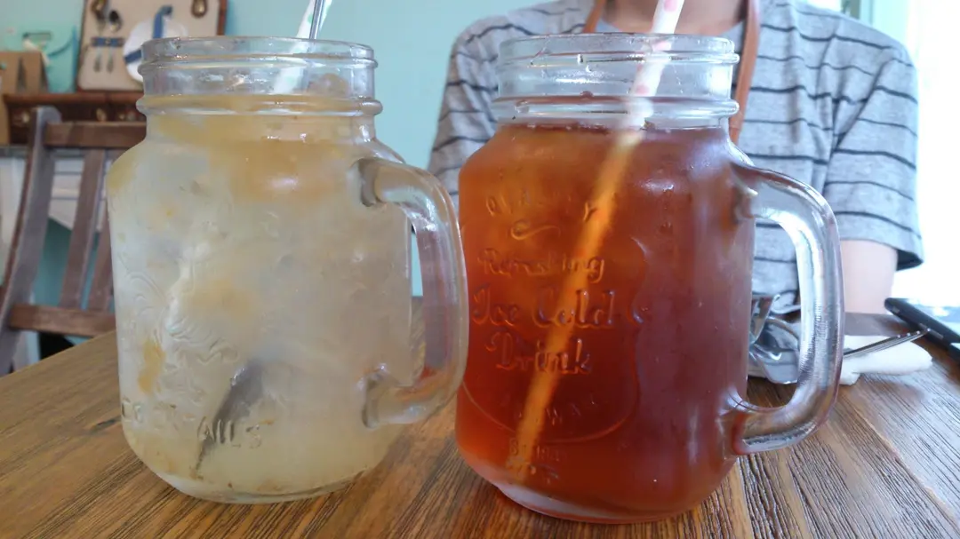 左桂花雪梨茶, 右冰紅茶