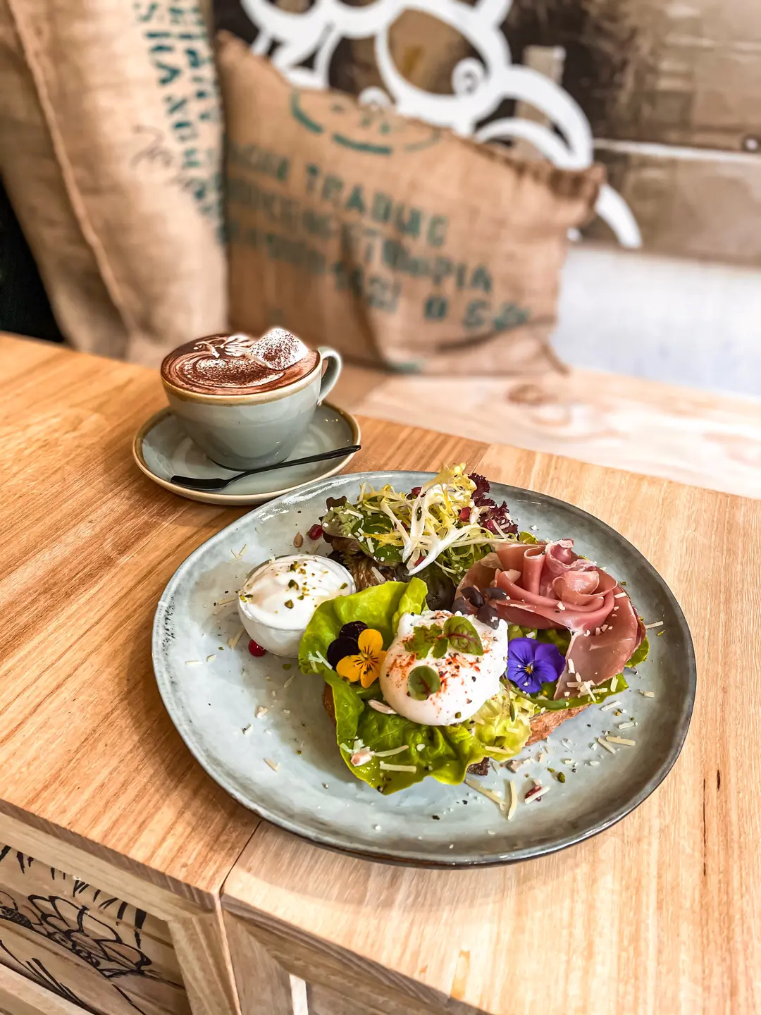 Hot Cocoa Latte ($46) + Parma Ham with Poached Egg Toast ($88)