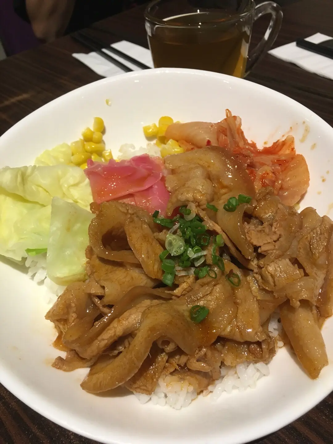 Kimchi  pork  on  mixed  ramen