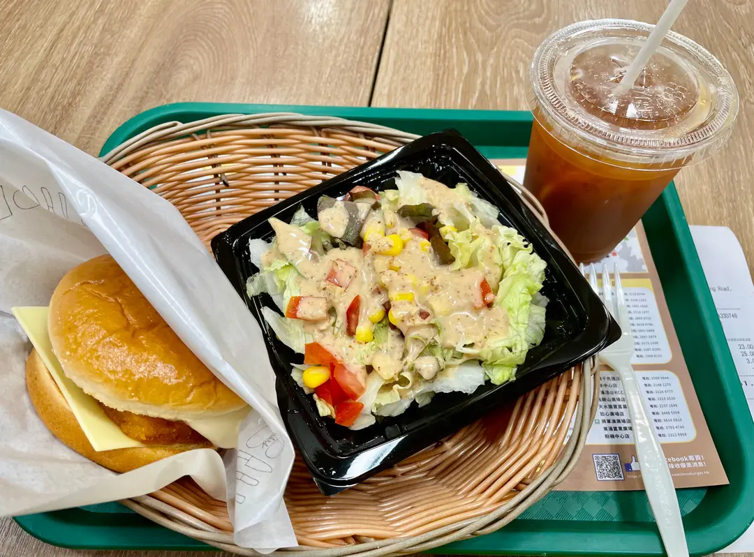Fish  Burger、Green  Salad 、Iced  Lemon  Tea