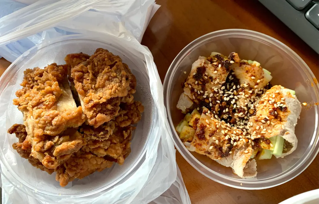 脆麻雞扒、蒜泥白肉卷