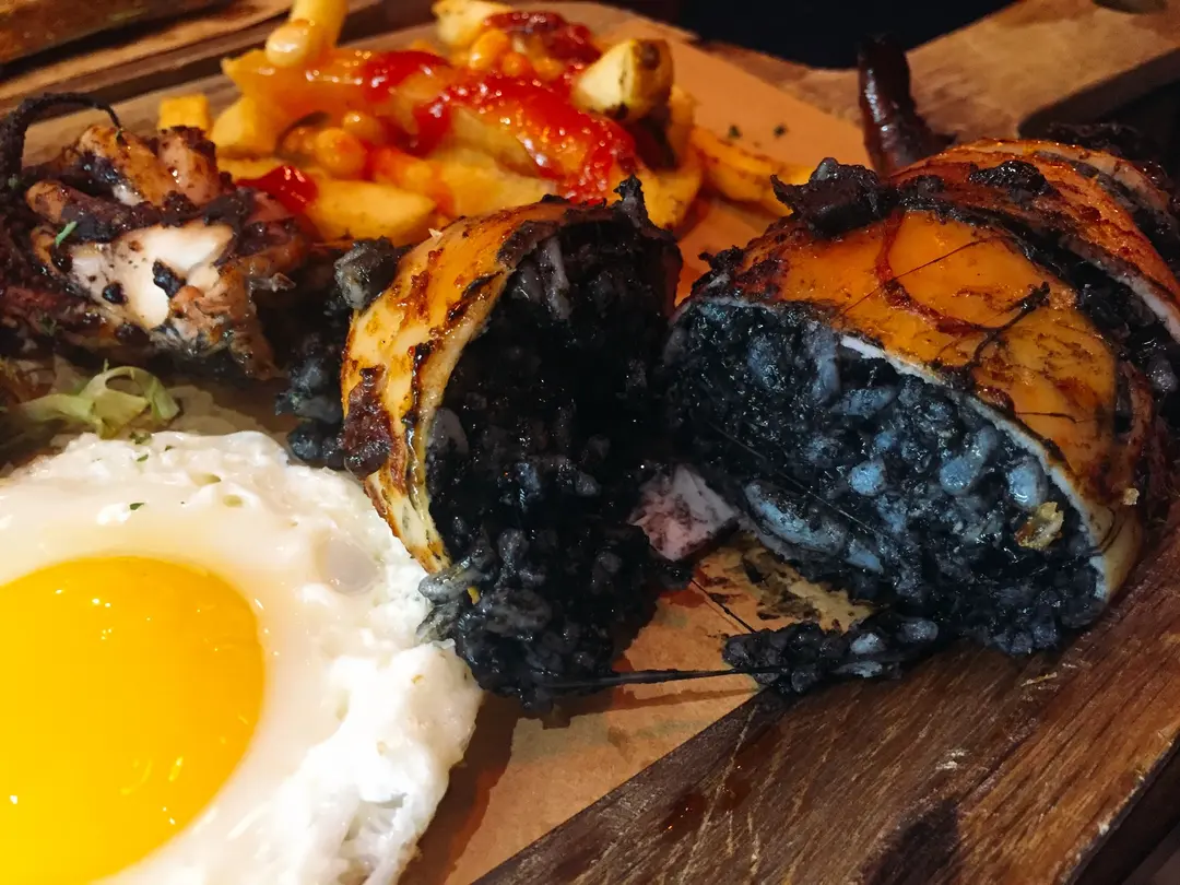 魷魚筒釀蘑菇芝士意大利飯