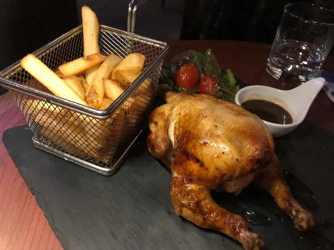 燒原隻法國黃油春雞釀西班牙辣肉腸及意大利白豆伴薯條