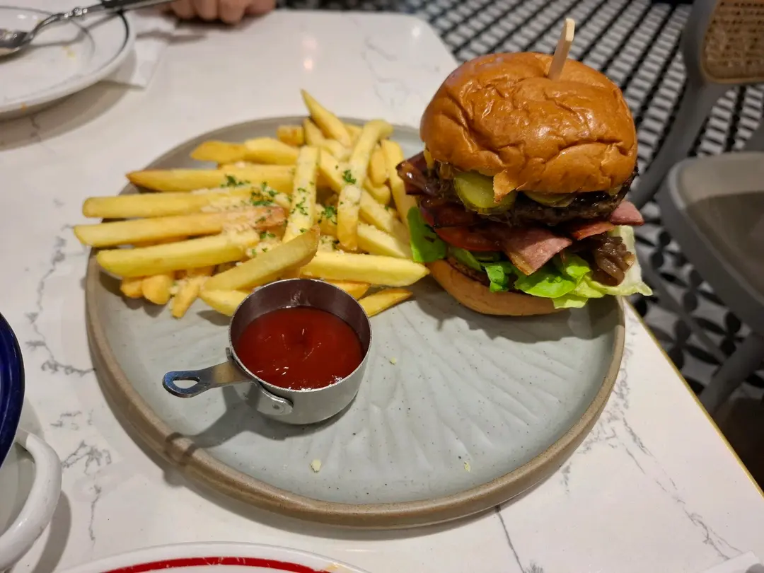 牛肉芝士煙肉漢堡 配 蒜香芝士薯條