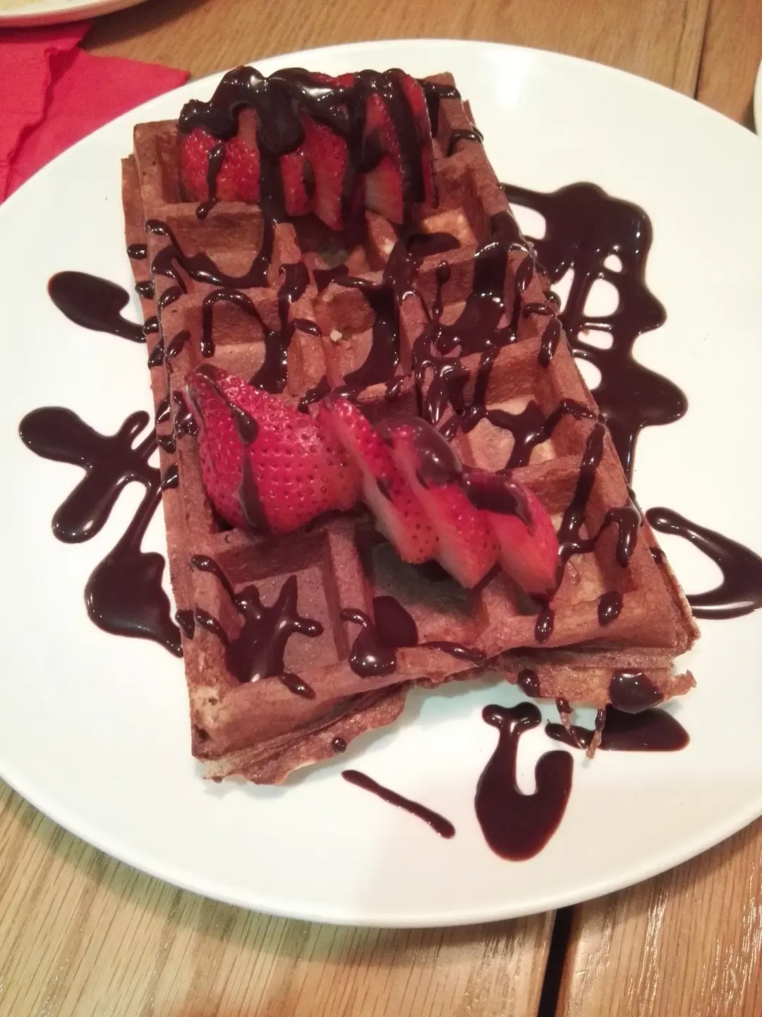 homemade chocolate sauce & strawberries waffle