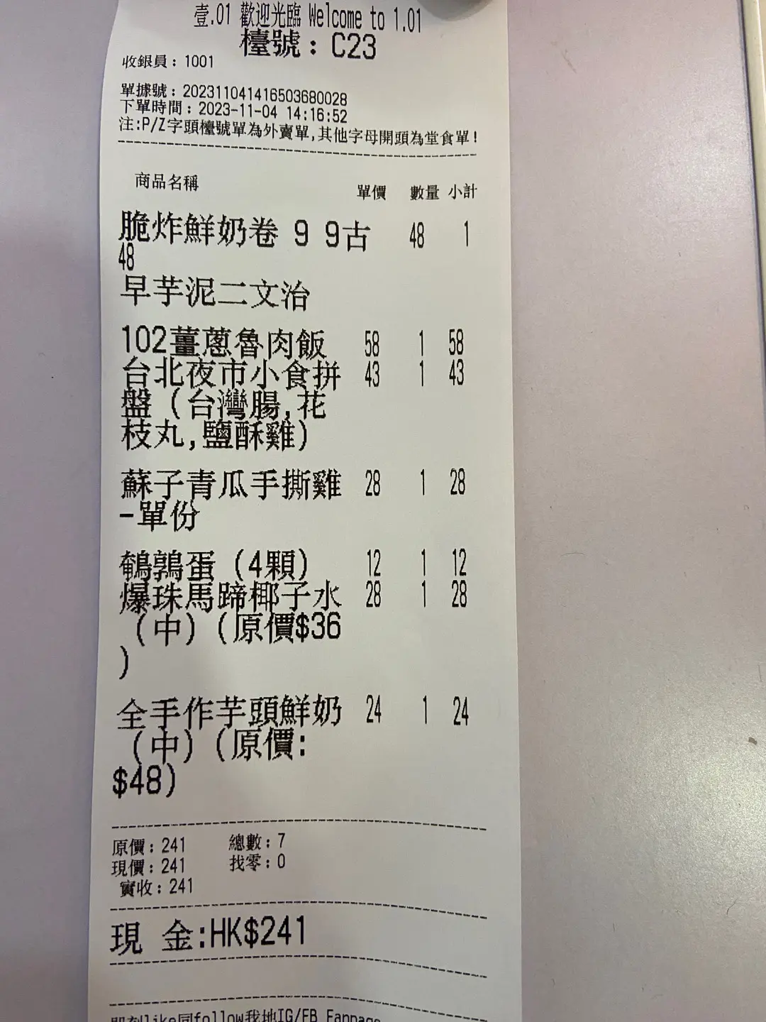 Restaurant: | One Point Zero One |