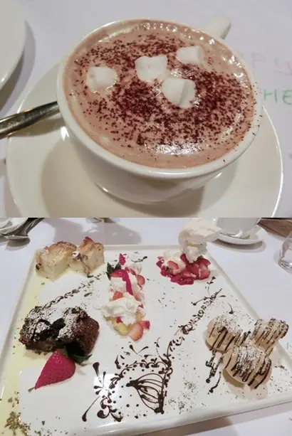 熱朱古力和甜品拼盤
