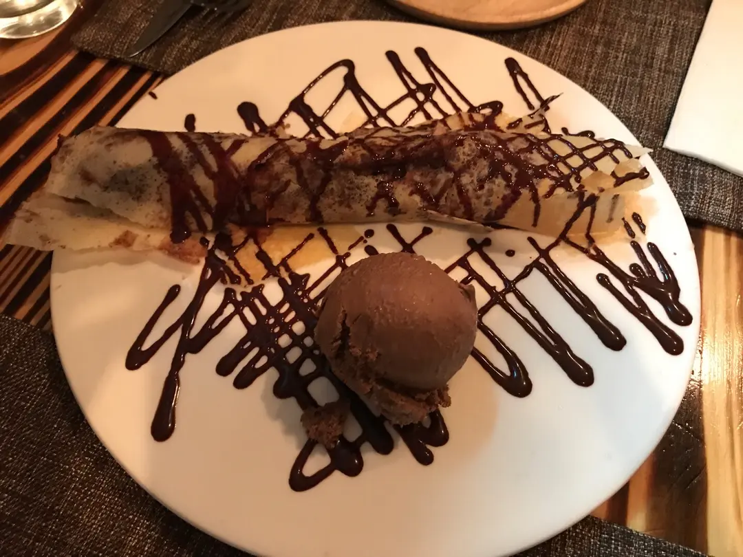 香蕉薄餅配朱古力雪糕