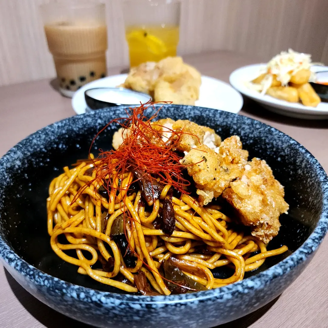 酥炸雞扒三星葱拌麵