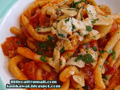 香辣蕃茄醬手造粗麵配脆蒜片