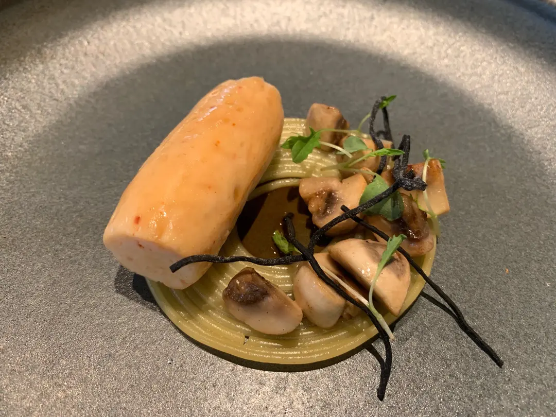 Shrimp  mousse  with  mushroom  and  spaghetti