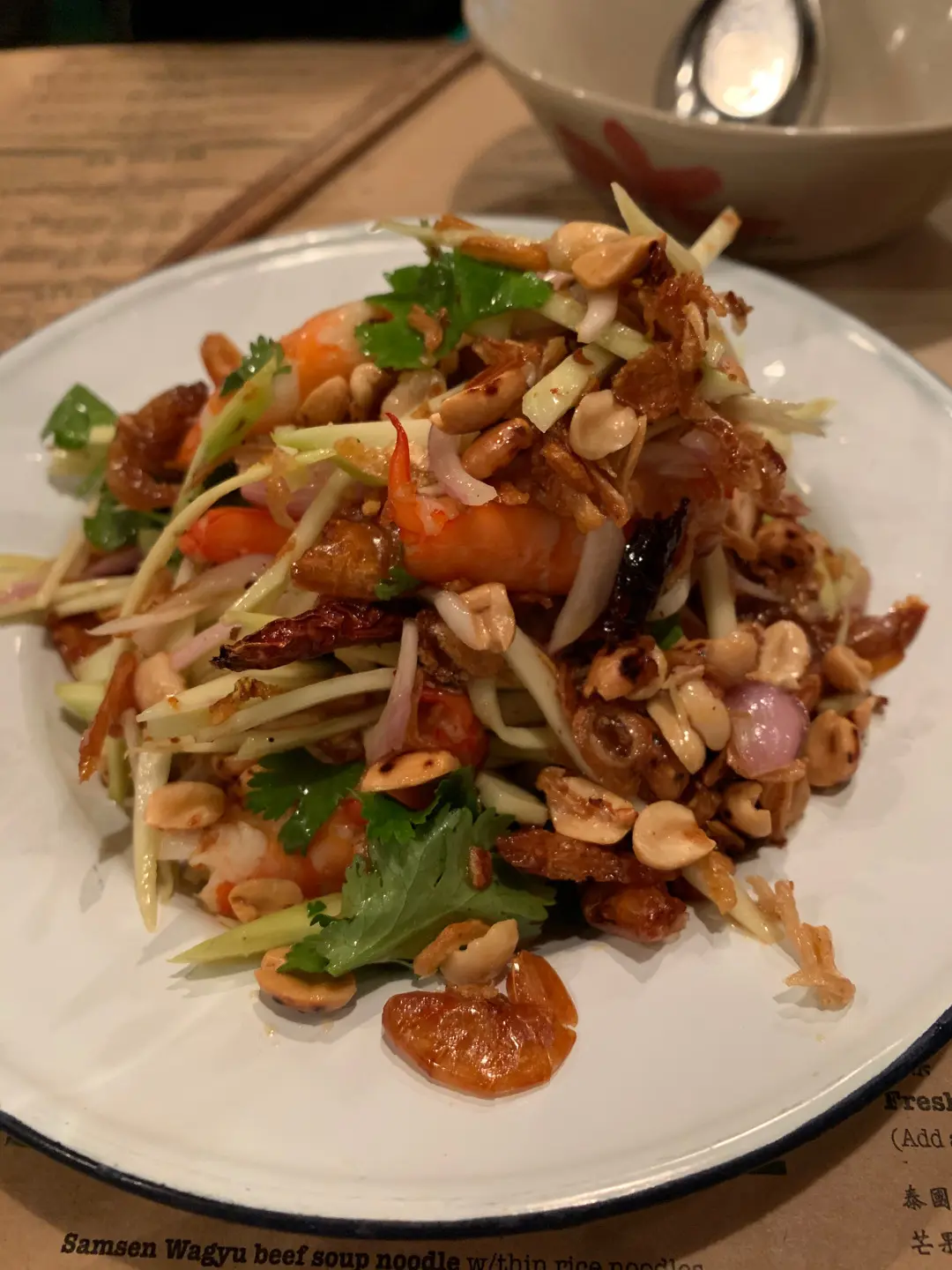 青芒果沙律配虎蝦