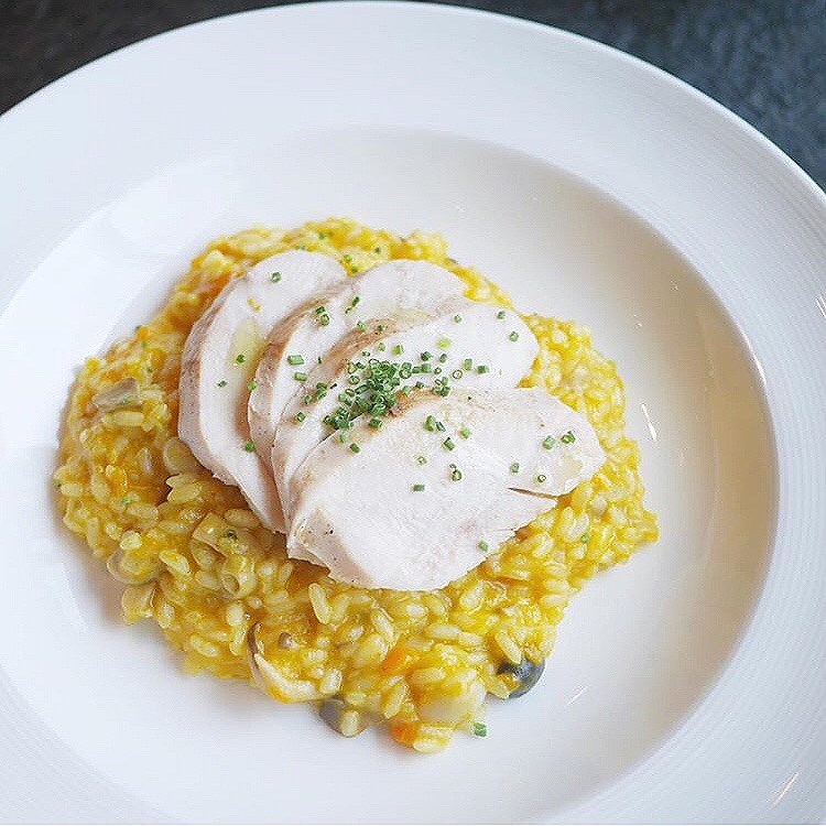 Pumpkin risotto with chicken breast