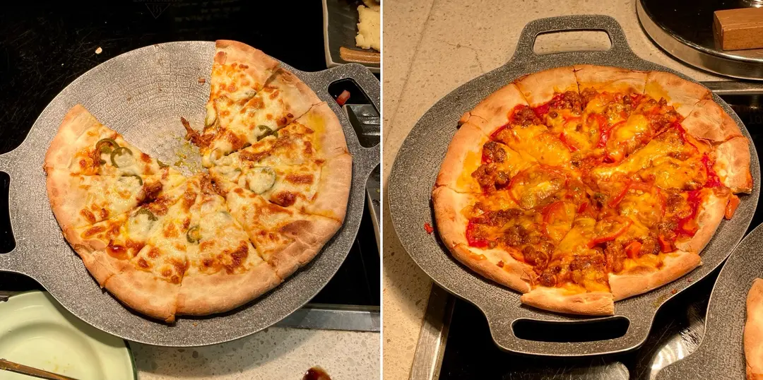 芝士漢堡薄餅和辣肉腸墨西哥辣椒薄餅