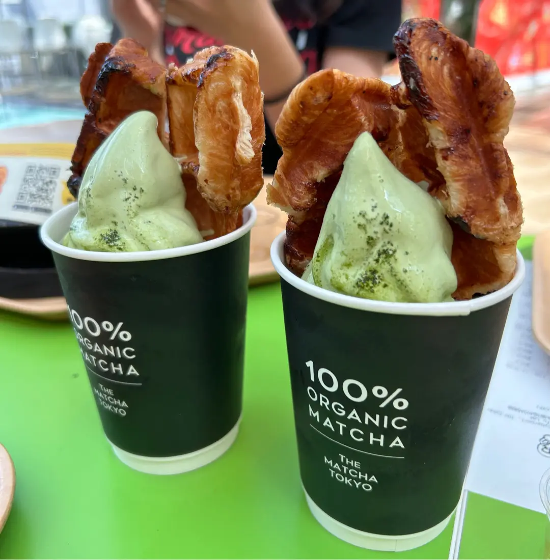 Croffle with matcha and Hokkaido milk ice cream
