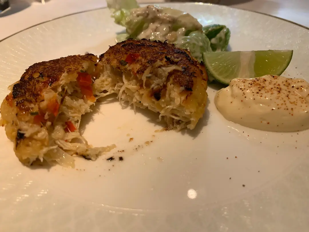 香煎蟹餅配熱情果蛋黃醬