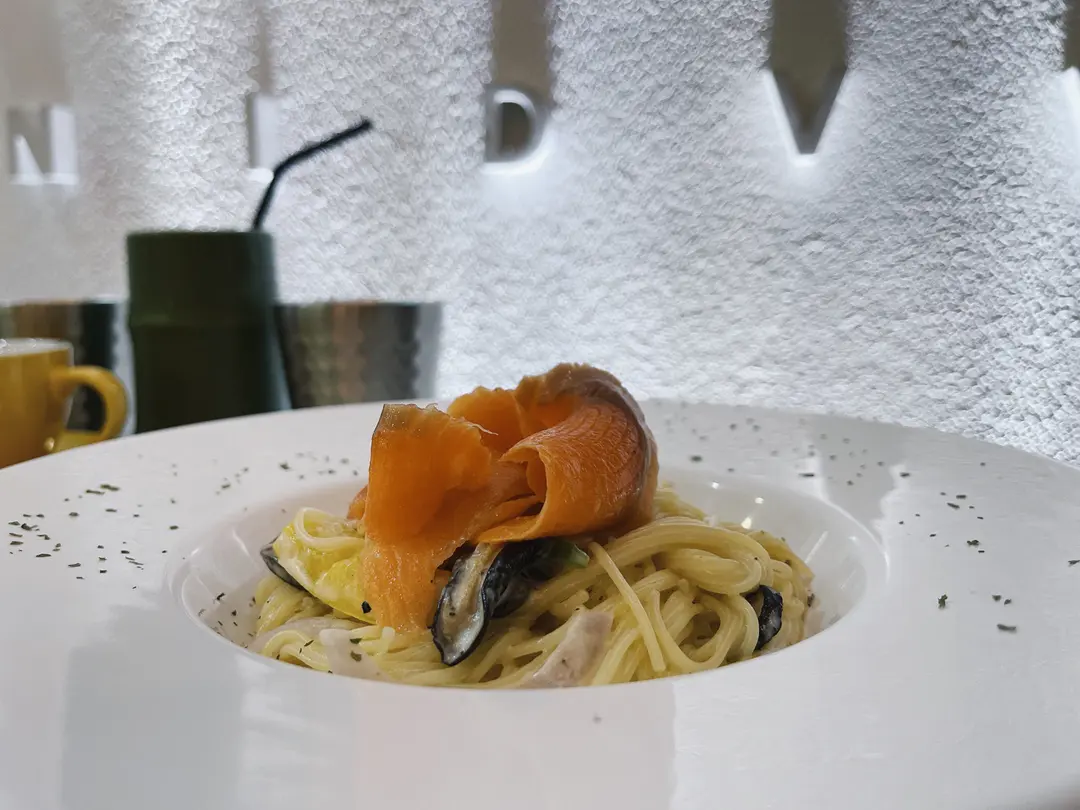 鮮忌廉野菌煙三文魚天使麵