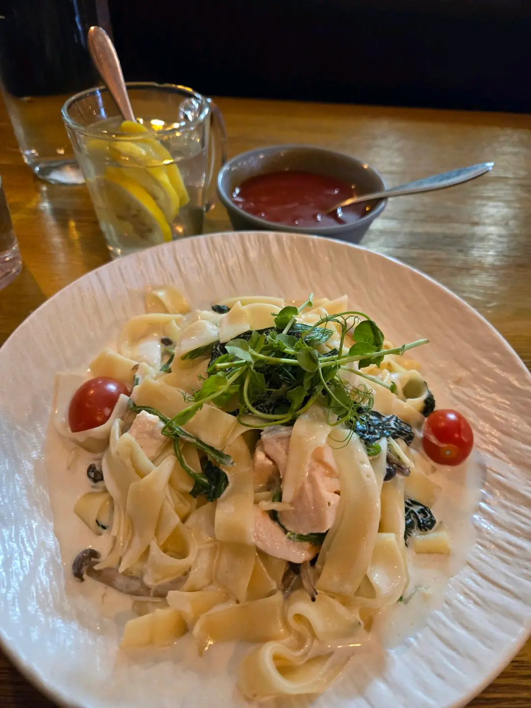 三文魚菠菜忌廉闊蛋麵