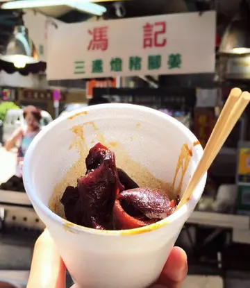 每次到澳門三盞燈,除了要去吃緬甸椰汁雞麵或到地道的園林小食點吃碗牛肉魷魚粉絲,然後算吃到飽飽也要到附近的露天小攤檔去買一小杯豬腳姜吃。 這家豬腳姜營業時間不是太固定的,我大概每三次到三盞燈才會有一次碰到它在營業 (可能跟它不是太有緣份吧)。 平常吃到的豬腳薑的材料通常都是豬腳、薑及雞蛋,但在這店可吃到的還有豬皮、大腸及豬耳呢! 我當天就點了一串大腸及一隻薑醋蛋。老闆娘還用杯盛了些薑醋給我! 薑醋入口有點酸,質地濃稠,滿滿膠原蛋白的感覺。薑醋蛋大概在鍋中煮了很久,蛋白部份都變得硬硬的,咬下去質感跟鐵蛋很像。不過,若不喜歡煮得太硬的雞蛋的話可以跟老闆提出呀! Read More