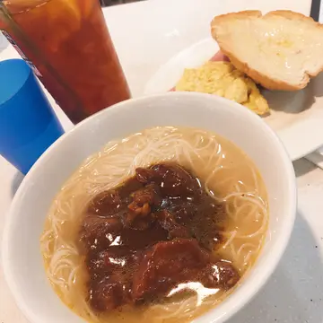 昨天因耍抽血驗身,早上空著肚去湾仔診所準備抽血,点知入到去拎左張籌,耍等十個人,故唔到抽血都耍等咁耐。餓著肚子等,终於抽左血。望下時間,己經十時三十分,於是趕快去食個早餐。自選八搭早餐 - 真係有好多款選擇,我選左沙爹牛肉麵,配太陽蛋及火腿,熱咖啡一杯。沙爹汁好香農,牛肉頗多,用來配麵食,好正。值得一提,這款麵雖然係普通麵,但麵質好好,咬落好爽。不似有些餐廳,一早煑定,到有客叫就將冷冰冰麵放落碗湯上。太陽蛋煎得好靚。Read More