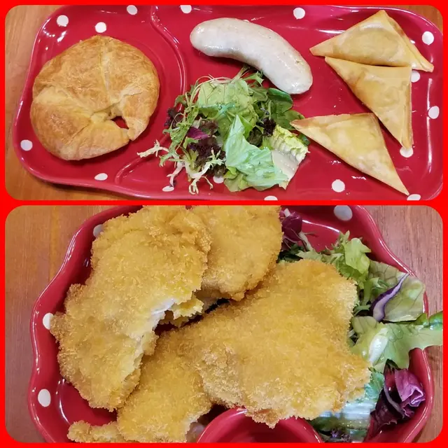 鄰檯食澳洲頂級羊漢堡,我睹物思伊人。此食友說羊漢堡頗香口,有醬汁中和,白汁豐腴,羶味不多不少,可以大快朵頤,值得街坊捧場,令我饞涎欲滴。嘉頓鐘樓已不能準確報時,到了下午茶時段,人去寥寂。我細閱下午茶餐牌,覺得食物比午餐精緻,款式有風格(已上載餐牌),選擇甚多。點選了「香脆牛角包餐」,上檯時的感覺很棒,令我食指大動,饞蟲亂舞,心情好轉。份量驚人,紅碟配紅磚,紅艶盈香。牛角包熱騰騰,極為鬆脆,入口即酥,口感豐腴;咖哩角甘香馥郁,滿口油脂。