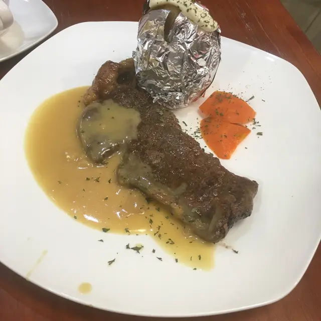 思潮有伏,萬里無雲。在此店的「露天茶座」(門旁兩張檯),眺望嘉頓山,「美荷樓」,嘉頓鐘樓,憶昔……。一年前的暖冬,我倆並肩同遊-「美荷樓」。寧捨美荷茶寮,移步到此新開小店小憇。妳說要遙看嘉頓鐘樓,我則品嚐「澳洲頂級羊漢堡包」,食嘉頓麵包。麵包像我,不熨熱,不鬆綿,有內涵,有高度,有層次,有特色,無濃郁醬汁麻醉味蕾,無耀眼顏色,無標榜高價。漢堡內的五種食材像妳,冷冷的,紅綠黃棕白,均勻,甚麼都齊全;號稱「澳洲頂級」,一點兒也不謙遜,貨真價實;羶味適中,魅力十足;不需醬汁以塗脂抹粉,真我如一。如增加熱度,隨叫隨到則更佳。餐具統一,均呈可愛的白圓點,有少女情懷,與妳很合拍。她最喜歡反而是門前免費任食客進食的小糖,總是把弄一番,當作棋子,當作畫筆,樂而忘返。今冬北風肆虐,路寒心冷,瑟縮在店內卡座,紅磚未添暖,白牆未可平伏心痕,黑梳化未送上半份浪漫。此「火車」卡位,能運載我去澳洲見妳嗎?古典格局,倒能令食客回到昔日的西方,發思古幽情。點選了兩客午餐,有香蒜牛油多士,西湯,飲品,價格幾同茶餐廳。午市一度滿座,熟客多;生客少,知音更少。從來同檯者多,知音者少。妳我都是饕餮,妳的「食力」遠比我強,見解獨特,食記出色,盼望妳早日回港,與我分享美食見聞。如妳去澳洲要找美食,此店都有「澳洲頂級」食品呢!紅湯對白湯,紅瓷襯白瓷,紅磚映白牆,我與妳卻隔洋相對。此店部份西餐不弱,我倆認為可惜是錯落在不當的地點,少女客少,年青人,假文青客少,高消費力客更少。唯有以低價吸客,但最終可能影響食物質素。多士沒有香,沒有蒜,幸好尚有餘溫,仍是脆的。羅宋,忌廉西湯質素一般。餐牌標榜,推薦「芝士焗粉飯餐」系列,我點選了「芝士焗咖哩牛肉飯」。咖喱飯辛辣度低,隱約有芝味,配合餐廳清淡風格。只是嫌飯稍濕,宜多焗3分鐘。真正招牌食品是芝焗肉醬意粉。為測試厨房實力,我才點選難度高的咖哩焗飯。「香煎鮮三文魚扒」則較遜色,說不上「香煎」,煎炸過多,較似餐牌另一款「吉列」魚柳的煮法。鮮三文魚只需煎香便可,燒汁則要講究。焗薯正如網評提及,太淡,宜加牛油和醬汁。