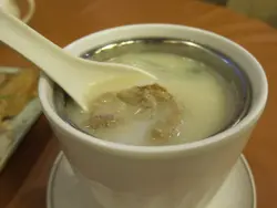 方魚肉碎粥$28---都好大碗, 潮洲粥的飯粒粒分明而廣東食粥是爆花狀,這是兩者不同的分別, 配料相當豐富,材料有冬菇, 方魚, 肉碎, 蕃茜, 而且飯粒完整分明, 散發淡淡的方魚味,材料豐富增加了入口的口感,味道真是好鮮甜
