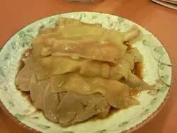馳名鹵水鵝肉$68 ---鵝肉都嫩滑, 不過嫌鵝皮不夠肥美,隻鵝瘦了一點, 燜得都好腍又入味,鹵水色好平均, 份量適中而且鵝的底層墊了一些翠玉瓜及芽菜舖底,, 可是翠玉瓜比較淡味不過都夠腍