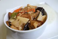 過年過節,大魚大肉,大吃大喝,在所難免。有時候都想清清地食返餐沒有肉只得菜的午餐或晚餐,所以這一天,當我在這間名為飯堂,實質是茶餐廳的店舖午膳的時候,就毫不猶疑地在七款午餐中選擇了臨時用手寫字代替原來的菜式,相信只在新正頭才有得吃,可遇不可求的「南乳粗齋」午餐。這午餐是包湯、飯和飲品的,才四十五元的價錢,都算合理。這天的餐湯是名字像水蛇春般長的「發財蠔豉大利蓮藕紅蘿蔔豬骨湯」。這湯雖說有蠔豉,豬脷和豬骨,但我在湯裡撈了一遍卻絲毫未見。不過這正合吾意,完全沒有肉在裡面的例湯,清甜的味道,喝得出沒下味精,紅蘿蔔與蓮藕也都煲得軟腍,作為一碗免費奉贈的例湯,已是及格有餘。主角的「南乳粗齋」與白飯雖一起送上,兩者卻是分開的,可讓顧客視乎喜好把多些或少些的粗齋倒於白飯上,這安排雖然簡單,但讓人感到貼心。「南乳粗齋」這通常只在農曆新年裡才會吃的齋菜,其實家人在過年時也會烹調,今年我也吃過,不過這菜式既然我頗喜歡吃,那在這茶餐廳中再吃一次,當然也絕不介意。這天的「南乳粗齋」材料挺豐富的,份量亦多,枝竹、雲耳、冬菇片、荷蘭豆、甜竹、青椒、白果、紅蘿蔔等一應俱全,我尤其喜歡它有很多竹筍。味道濃淡得宜的南乳汁,伴白飯吃,實在美妙。簡單廉宜的午餐,配一杯冰凍的「少甜凍奶茶」,也不錯呢!…查看更多