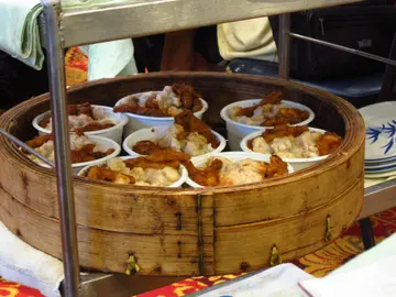 一大早將媽媽叫醒,上茶樓飲茶~~由小西灣走到漁灣村,為的是嘗新意搬到東區差不多十年,還未試過過家酒樓,今天終於有幸來「一盅兩件」這家名為東方漁港的茶樓 早茶點心 小點8.8 中點12.8 大點14.8 特點16.8 優點19.9 對早茶來說價格一般般可惜我們來到時已11:15a.m,埋單都12:15noon,過了11:30a.m的早茶時分,要計午市,無論大、中、小點都貴了$2其實這間酒樓點心頗多,五花百門,酒樓亦有兩層,是一幢式的,就是服務差了些服務員是十叫九不理式的....交點心紙已非常困難,點心來的速度更慢得非常...等了差不多20min才來頭一樣點心...點心味精多多...由其是下圖最左邊的菜肉水餃,但蝦餃的蝦反而鮮滑,可惜皮太厚燒賣不好吃,豬肉燒賣沒哂味,樣子也不好看...紅棗糕更免談,粉粉的,還真像吃甜糕,一點彈性也沒有,咬了一口不吃了燕麥菜肉包被我吃了兩個,不過味道還不及超市賣的「叮叮」包好吃,個子又細小...煎三色糕=蘿卜糕,芋頭糕,馬蹄糕,這些不過不失家鄉煎薄餅 我反而延喜歡的,這薄薄脆脆的薄餅邊邊,中間雖然不是脆的,但有口感,不是粉粉的,點上些許甜醬,風味極佳 這只飲茶共消費百多元,點得太多了,吃不完真浪費,最後還是我吃掉的...很胞,非常胞,極胞…Read More