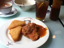 係附近食早餐,揀左呢間,叫左"香煎雞扒配薯餅",個雞扒唔係"煎"係"炸"!!好多油!!個薯餅就不過不失,但價錢就合理,服務都唔錯,下次未必會再黎,因為附近都有好多選擇.