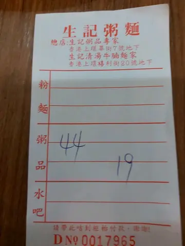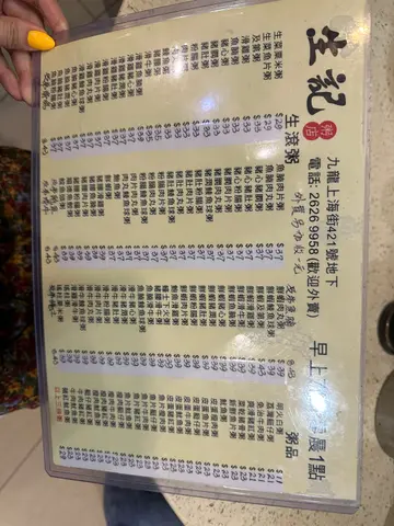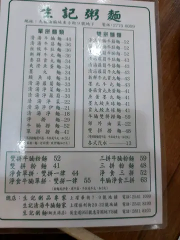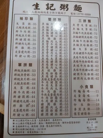 早幾日在網上見到話呢間粥麵舖做到呢個星期日(6月18日)就結業唔做,話好可惜,我上openrice睇過話得兩間,快結業嘅呢一間起旺角,另一間起北角。北角就少去,旺角就間中會去,咁啱尋日(6月15日)去開旺角,反正未食過,於是就順便嚟呢間食嘢。入到嚟,由於係中午12點幾,雖然落住雨,但都有8成滿,大檯就張張都有人,我見到最入,廚房邊有張雙人檯無人,啱晒,唔使搭檯,正!👍💓坐低睇個餐牌先至佢唔只得兩間,原來總店係上環生記,上環嗰間我食過好幾次,嗰間可以用行人如鯽去形容㗎。餐牌望落好似好多嘢咁,但實際係唔多選擇,粥只有生滾粥,艇仔、碎牛、豬紅呢啲全部無,麵只有牛三寶及潮州丸類加埋鯪魚球及蘿蔔,雲吞、水餃、豬手、炸魚皮通通都無。腸粉得齋腸,無炸兩亦無炒麵,只有炒米粉,油器只得油炸鬼。粥與麵之間,我選擇咗至愛嘅及第粥,無我至愛嘅炒麵,唯有選擇米粉,一共$63。米粉加咗豬肉碎去炒,味道一般,而最大問題係無油,變咗唔夠滑,有啲乾身,而且用嘅唔係新竹或泰國米粉,質地碎濕濕咁,,唔得煙韌,唔係咁好食。至於碗及第粥,唔知大家睇唔睇到有啲咩咁特別?係碗粥面無加薑葱絲,葱絲係另加豉油,用個碟仔裝畀你,呢個做法甚少見,食法你畀係將豬雜夾出嚟點葱絲及豉油食。碗粥大大碗,係熱辣辣滿到瀉咁捧出嚟畀你,材料非常豐富,有粉腸、鮮牛、豬肚、豬肉丸、豬膶,每樣至少兩件,味道夠,粉腸唔苦有口感,豬膶夠軟,係豬肉丸唔夠爽口,個粥食唔出有重味精,好食好飽肚,如果要挑剔嘅話,我嫌啲粥比較稀,尤其是食到最後,可以直接飲哂落肚。至於衞生環境就一般啦!間中會有啲昆蟲飛過。總括嚟講,碗粥係好食,米粉差啲。…查看更多