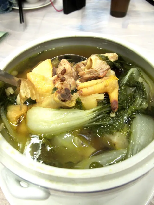 別人上班自己放假的日子,走在灑滿和昫陽光的寧靜的街上,份外寫意,想起友人介紹這間聚友,午市有沒有黃鱔飯吃呢?第一次10時半打電話沒人接,十分鐘後老闆竟回電,說午市已有黃鱔飯吃,在冬日吃煲仔黃鱔飯,太幸福了。老闆特意來相認,素味謀面,我一個電話,他就浸定米,牙齒當金使,我們一到,立即燒飯,20分鐘送上一大鍋一斤黃鱔造的飯,一打開蓋,撲面而來已是濃濃的飯香,滾熱辣,黃鱔確如老闆說,條條用人手剝成絲,是功夫心機餸,每一口都充滿黃鱔的獨有鮮甜和香味,青葱也不賴,剁成粒粒,還是顆顆挺拔,飯煮得很爽,這裡最好是不像廣州陶陶居和附近的大中華般,豉油搶了鏡,這碗冒着煙的飯,祇是黃鱔、薑、葱和飯的協奏,已經簡單美味,這煲飯足有七碗飯,我們連吃五碗,外帶兩碗,為的是寶物尋歸底的飯焦,倒半杯熱茶,自製茶漬飯,帶焦香的黃鱔飯更是人間滋味。外加的芥蘭炒牛肉也是下次必叫的,芥蘭是已切走老皮的,件件是菜遠,牛肉是久違了的沒梳打粉味的真正牛肉,鑊氣十足,牛肉和芥蘭一起生炒,不是欺世盜名,淥芥蘭淥牛肉求其兜兜那種,所以牛肉嫩滑有真味,芥蘭爽脆,蠔汁和油coat滿肉和菜,汁不留半點在碟,功夫了得。聚友午市的碟頭飯看來十分不錯,阿姐穿梭為客人送上貼心的熱湯,那湯不是温溫吞吞的如「水」例湯,而是真材實料每碗有幾件青紅蘿卜加排骨的濃湯,更是燙囗的熱,潤澤了辛苦工作半天的客人,我們也呼啦呼啦喝光。也點了五味鵝,其實也很美味,惟我偏愛香口,被比下。…Read More