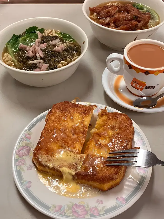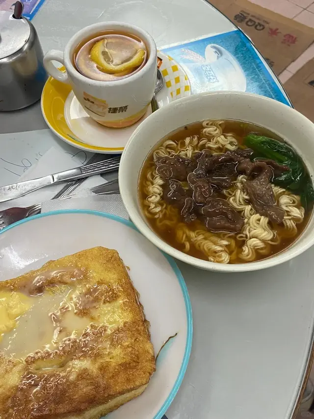Chef Ecy’s Dining Experience:🥰 Food | Service | Easy Access | Easy Parking | Wheelchair Friendly | Restroom Cleanliness🙂 Ambience | Price😠 Pet Friendly | Corkage Fee | Cake Cutting FeeThis 茶餐廳 (Hong Kong-style cafe) is a unique establishment, with only one branch in the city. A popular spot for many years, it's a beloved local institution.Location & Accessibility:Conveniently located at street level on Hollywood Road, the cafe is wheelchair-accessible. For those driving, there is meter parking just across the street. If you're taking the MTR, get off at Sheung Wan Station; it's about a 7-minute walk from Exit A2.The Venue:The restaurant is very clean and well-maintained - I've even seen the staff diligently cleaning first thing in the morning. A restroom is available inside for customers.The Food & Menu:The menu is straightforward. Their signature dishes are the french toast and the beef brisket noodles. Note that they do not offer set meals, so all drinks are ordered separately.* French Toast: This was the highlight! Freshly made, it was crispy on the outside and wonderfully soft inside, served with butter and syrup. It pairs perfectly with a hot milk tea or coffee.* Noodles: We tried the pork liver and radish tenderloin rice noodle (豬潤牛腩米). Be aware that the noodles used here are instant noodles (公仔麵). The bowls are not cheap, costing nearly $50 each. If you prefer a fresh tomato soup base, there is an additional charge of $8.* Drinks: Soft drinks are available for an extra charge.Service & Hours:The service is good and efficient. They are open from 6:00 AM to 6:00 PM every day except Sunday.In Summary:While adding up the cost of noodles and drinks can make for a somewhat expensive breakfast, the good food quality and clean environment make it a worthwhile visit.…Read More